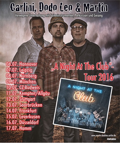 Vom 6. bis zum 17. Juli bin ich mit Dodo Leo und Thomas Martin auf Deutschland-Tour, um unser Album „A Night At The Club“ vorzustellen.